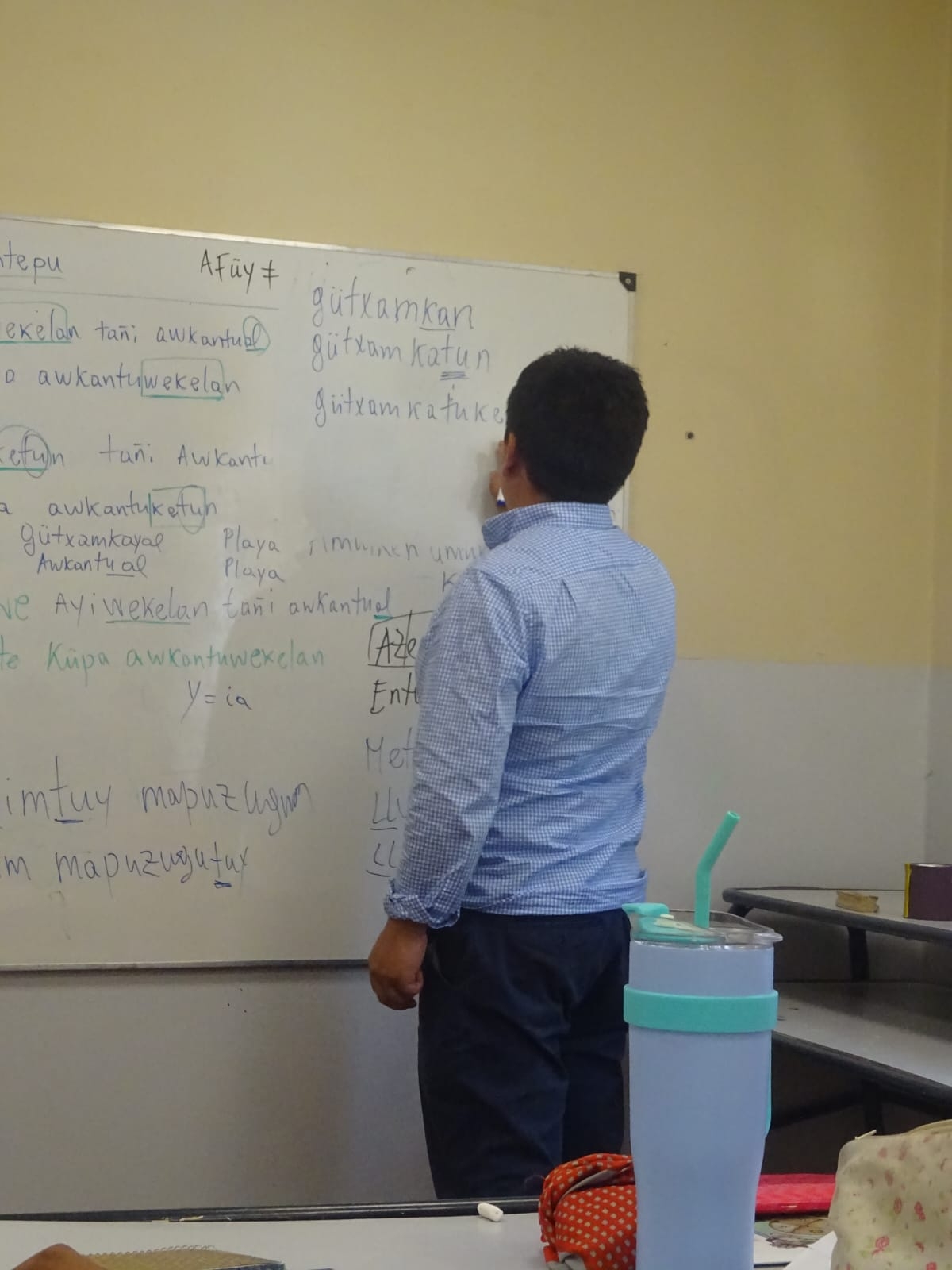 “El internado lingüístico en mapuzungun es un espacio de enseñanza aprendizaje intensivo de la lengua mapuzungun de nuestro pueblo mapuche tehuelche que desde hace varios años se está llevando adelante en nuestro Wall mapu, en nuestro territorio ancestral, tanto de este lado de la cordillera, el Puel mapu, como en el lado del Gulu mapu al oeste de la cordillera de los andes”. Como relata Iván, es “donde nos juntamos personas interesadas en aprender la lengua sean mapuche o no mapuche para compartir clases tanto con kimelfe, docentes hablantes de la lengua, como también almuerzos, cenas y otros momentos recreativos, poniendo en práctica lo aprendido y compartiendo por parte de quienes saben un poco más a los que están recién aprendiendo, a fin de incentivar el uso de la lengua. Entonces es un espacio muy ameno, muy amable, para poder aprender y para poder también reforzar saberes vinculados a la lengua para quienes ya estamos en el camino de esta revitalización lingüística”.