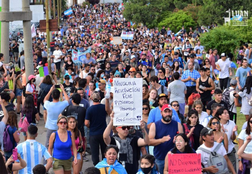 Se multiplican las manifestaciones para exigir la libertad de los vecinos Naum Vargas y Damián Díaz, detenidos el viernes pasado tras ser condenados por su participación en el Chubutazo de 2021, cuando miles de defensores del agua y el territorio manifestaron en contra de la aprobación de la ley que habilitaba la megaminería en nuestra provincia, la cual finalmente fue derogada por la masiva movilización que, como el río, se extendió desde la cordillera hasta el mar. Un día antes de la mencionada condena, Lautaro Martínez -uno de los imputados- apareció muerto en su casa: en la sentencia fue absuelto “por falta de pruebas”.