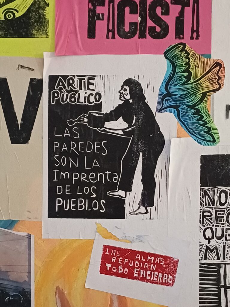 Para quienes lo llevan adelante, ese momento de hacer el mural puede ser exorcizante, un acto de salud: sin otros medios a disposición para amplificar la voz, están contando qué duele, qué alegra, qué se necesita seguir de cerca. Quien ejecuta se aliviana mientras pinta, cuando una persona se acerca a preguntar, cuando le cuentan algo referido al tema, o cuando se enojan.