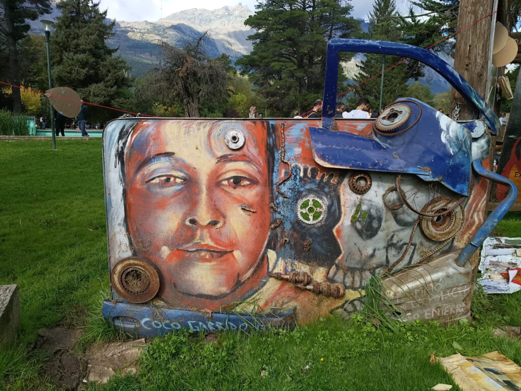 En ese sentido, Crespo cita el caso de los murales de Plaza Pagano en El Bolsón, “que son murales vinculados con experiencias de violencia y trauma, murales de memorias traumáticas, y funcionan como puntos de reunión para iniciar marchas, hacer asambleas, realizar festivales sobre alguna problemática en la localidad, hacer aniversarios o homenajes a quienes fueron violentados, etcétera”.