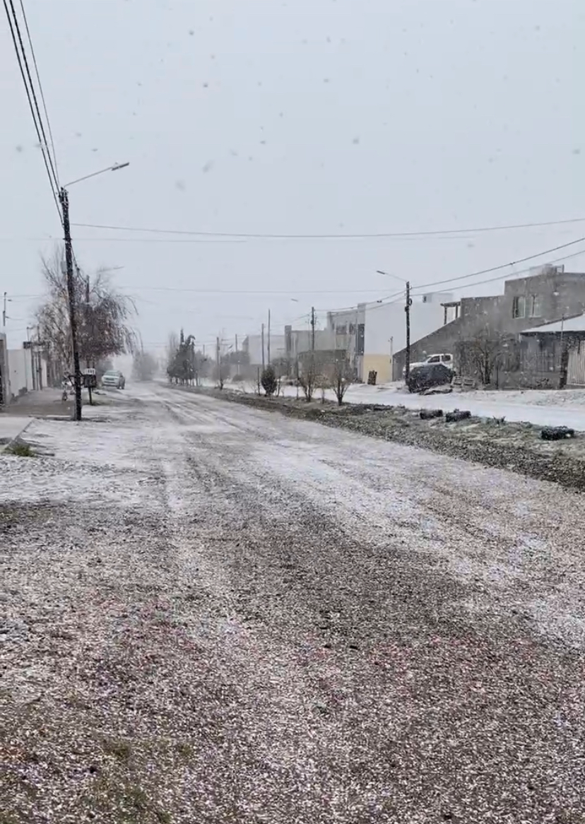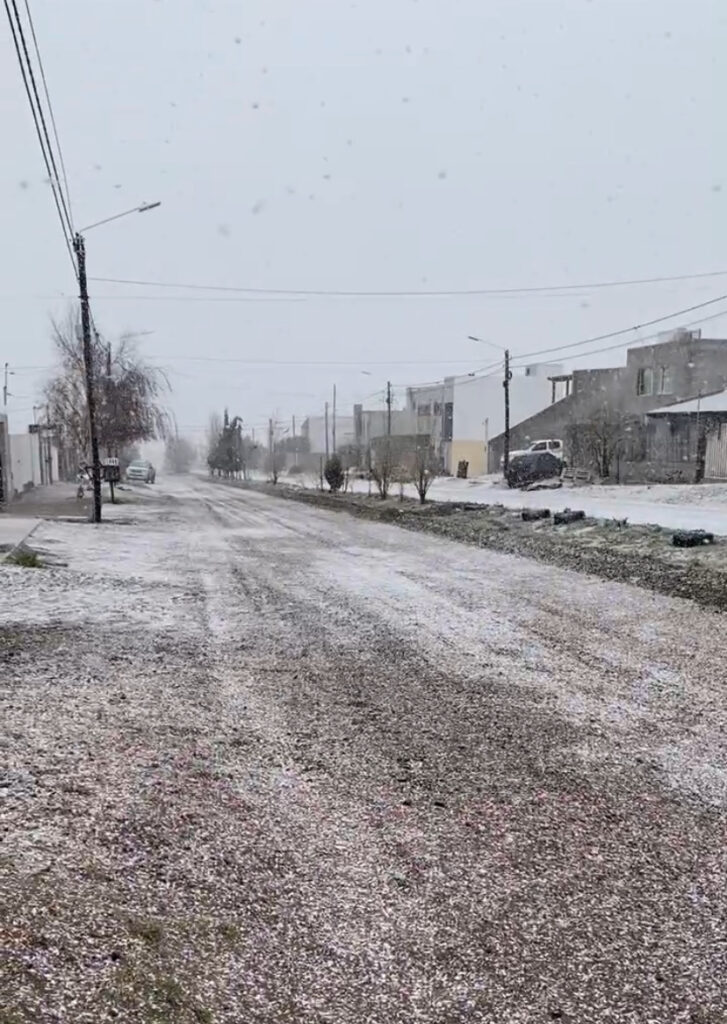28 de junio de 2025: registro de la nevada de tres horas en Madryn. Nada que ver.